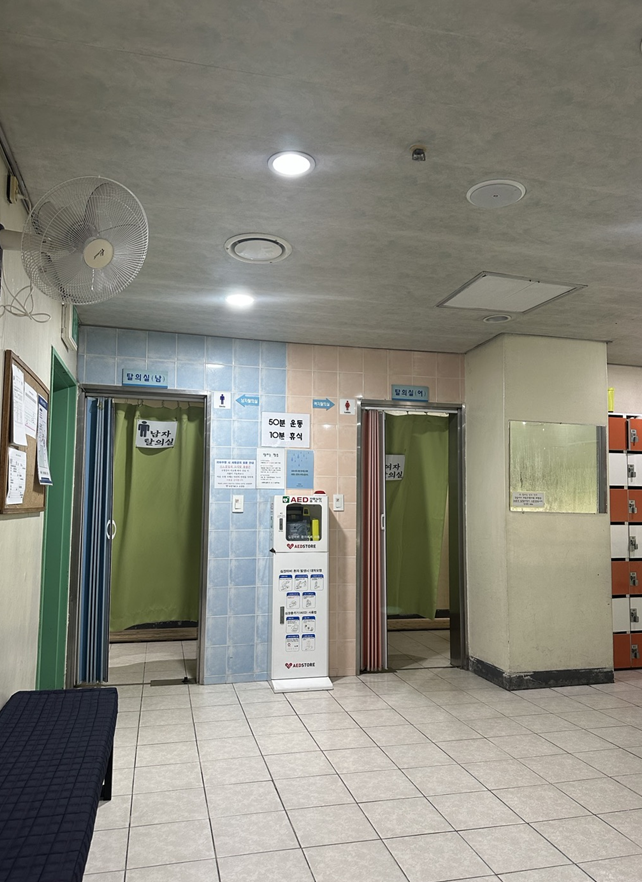 2. 여성 샤워실 우측에 여러 대의 드라이기가