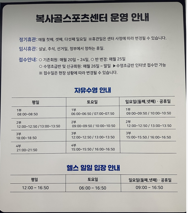 재오픈한 복사골 문화센터 (스포츠센터)에서
